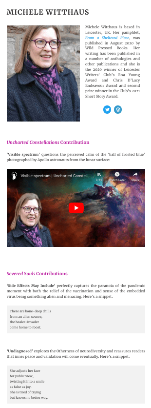 On Saturday 26th November, we are going to have a #ChartedSouls launch party at Leicester Friends Meeting House. Showcasing both our lockdown anthologies, this event will celebrate the journey through the stars that Uncharted Constellations took us on and the reflection on identity that Severed Souls drew us into.