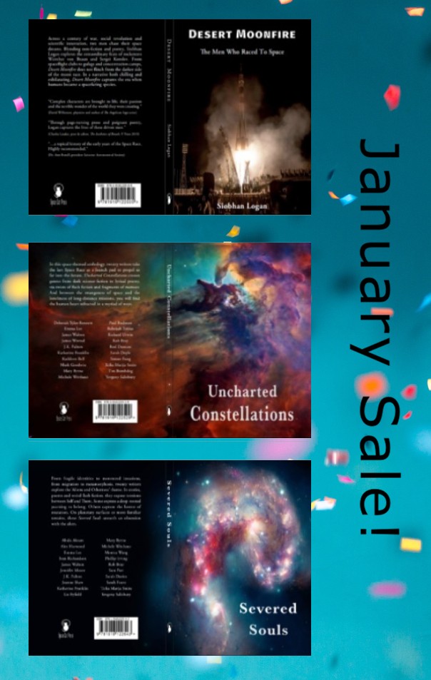As the rain closes in and days merge into night, why not curl up with some star-struck reads? We’re into a second print run of our unearthly anthology on Aliens & Otherness theme, SEVERED SOULS. And this month we open our docking hatch for a January Sale stacked with bargains. Between Friday 6th January and Friday 27th January, you can bag TWO of our paperbacks for £14 or THREE books for £20 (saving a whopping £4!) And our ebooks are still only £2.50 a go.