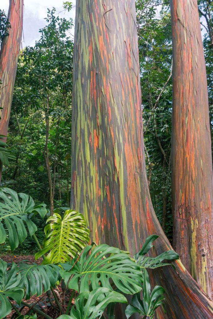 Rainbow eucalyptus trees can grow up to 250 feet tall in their native tropical countries.